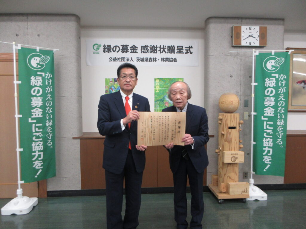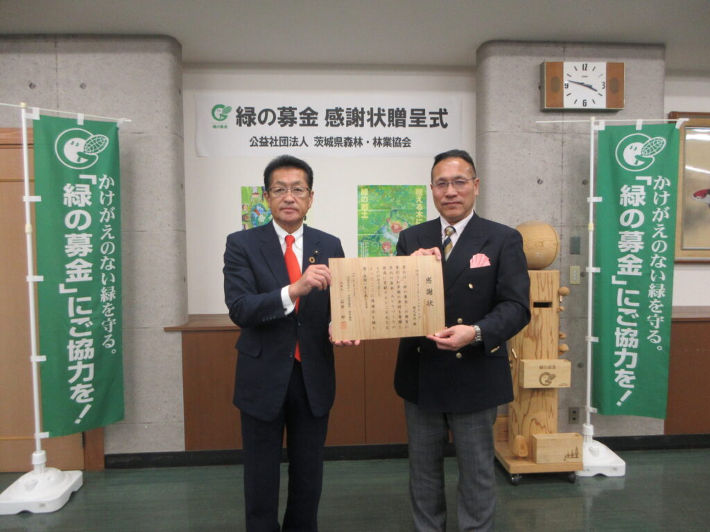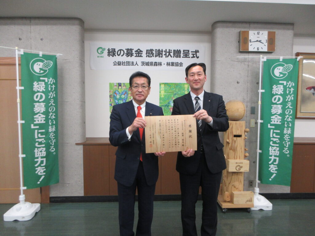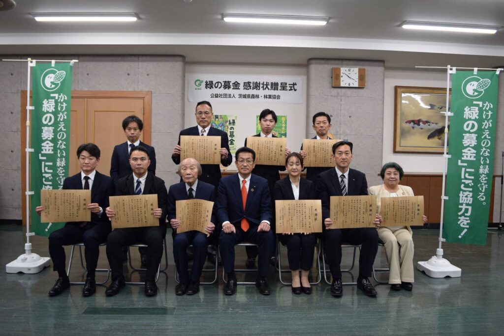 感謝状を贈呈された団体は次のとおりです。㈱カスミ 一般社団法人茨城県建築士会 ㈱ナオイオート ㈱常陽銀行 ㈱めぶきフィナンシャルグループ いばらきコープ生活協同組合 関東防水管理事業協同組合 MHIパワーエンジニアリング㈱ コカ・コーラボトラーズジャパン㈱ ダイドードリンコ㈱ ㈱とりせん 大洗ゴルフ倶楽部 ㈱Nikkan茨城ゴルフ倶楽部 ㈱大利根カントリー倶楽部
