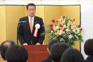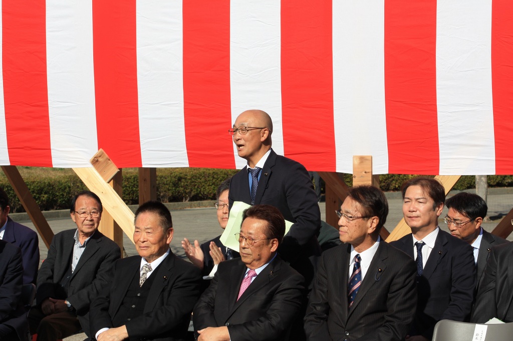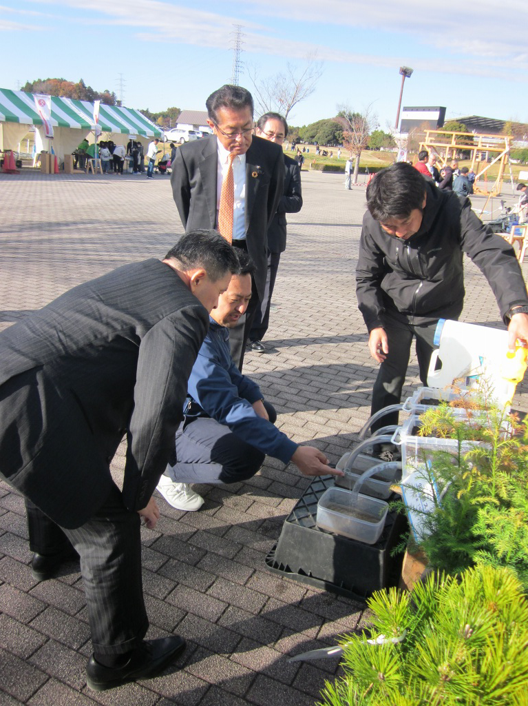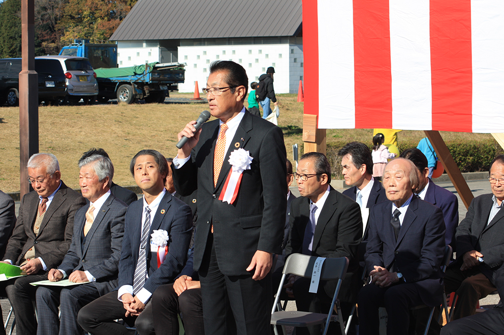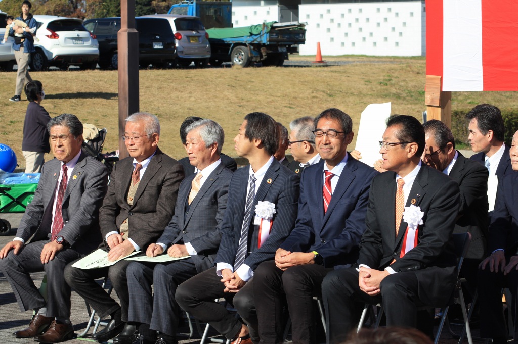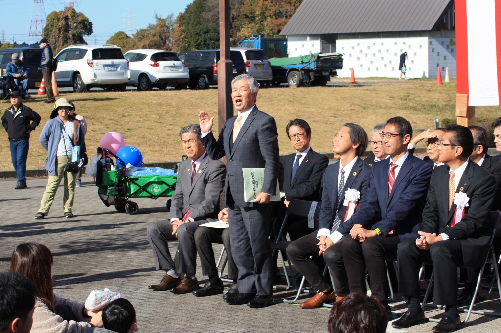 当日はポカポカ陽気の晴天に恵まれ、石井邦一実行委員会会長ほか、来賓として海野県議会議員はじめ多数の茨城の森林を守る県民会議、茨城県森林・林業・林産業活性化促進議員連盟の皆様方にご臨席いただくとともに、多くの林業関係者のご出席の下、開催セレモニーを盛大に行うことができました。