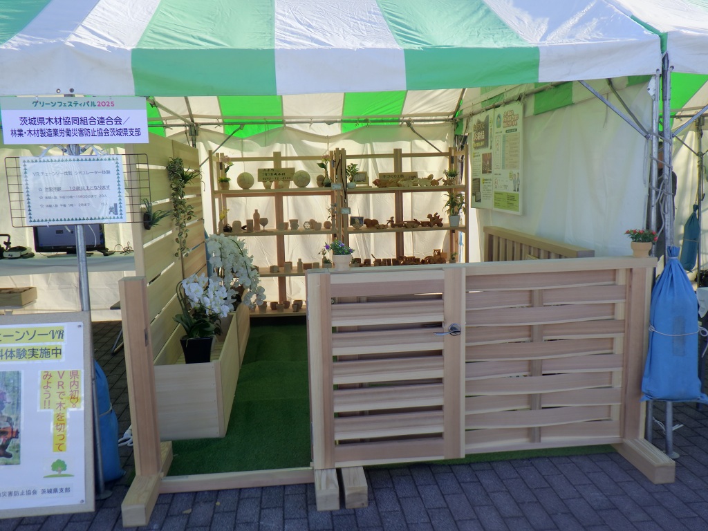 令和7年11月29日(土)にひたちなか市佐和の「笠松運動公園山新スイミングアリーナ」前の広場を会場として、茨城県森林・林業協会や茨城県、茨城森林管理署及び県森林組合連合会、県木材協同組合連合会など林業関係団体で構成する実行委員会が主催し、茨城新聞社、茨城放送の後援を得て、グリーンフェスティバル2025を開催いたしました。
