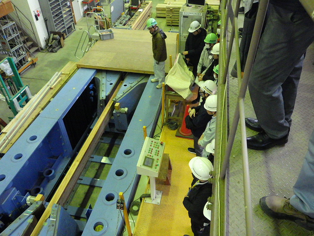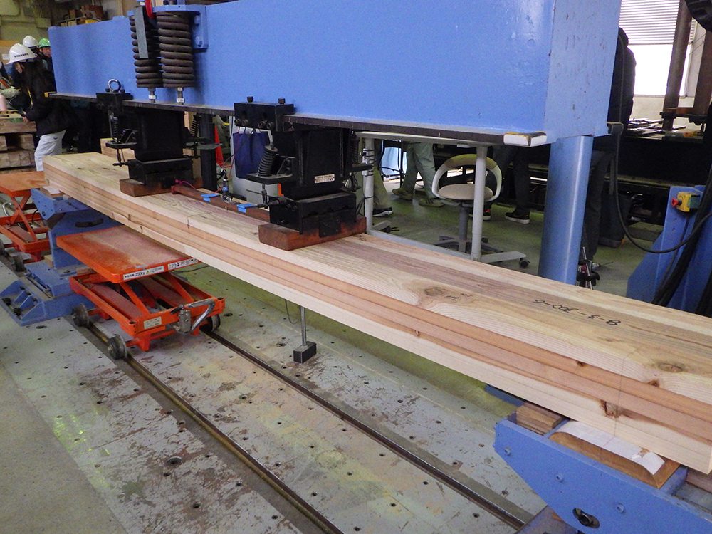 木質構造材第2実験棟見学(木材の曲げ・圧縮・引張などの試験)