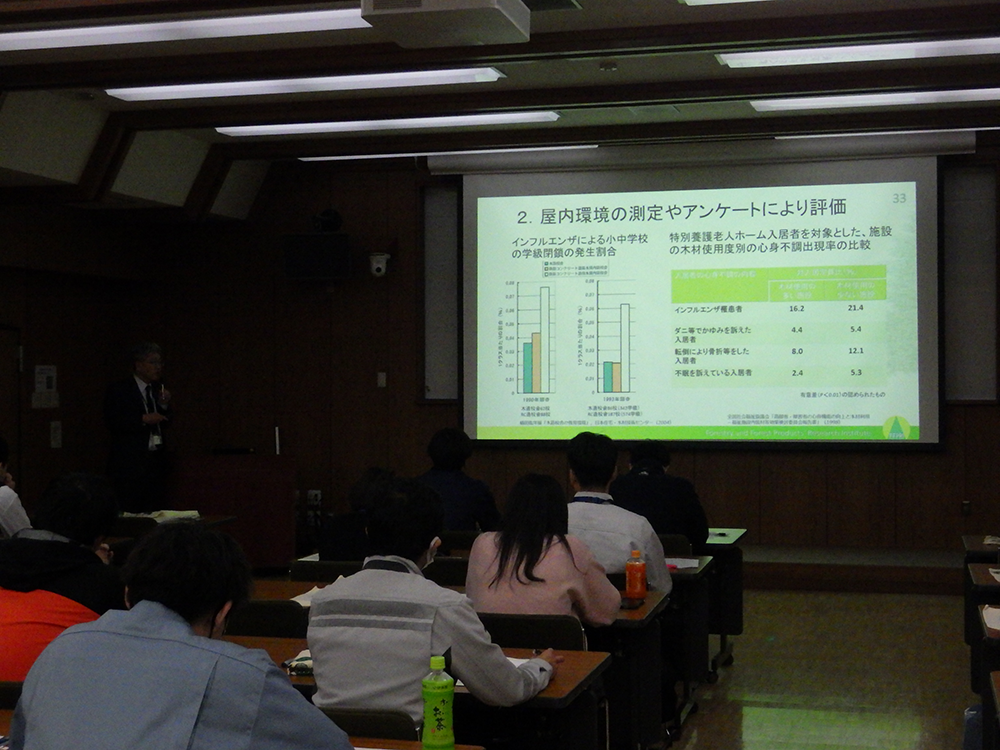 | 内容 | 森林総合研究所見学 ・木造住宅実験棟 ・木質構造第2実験棟 講演 (テーマ)科学的アプローチでわかった「木の良さ」とは 講師:木材研究部門木材加工・特性研究領域チーム長(特性評価担当) 杉山 真樹 氏 |
